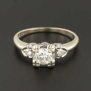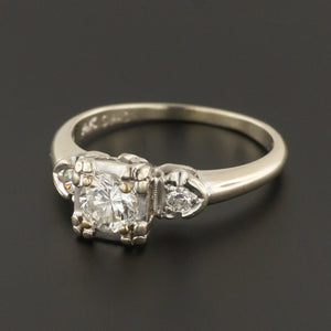 A classic diamond ring featuring a 53 point (0.53 carat) modern round brilliant diamond of G-H color, VS2 clarity and two 4 point (0.04) modern round brilliant cut diamonds. The total carat weight of the diamonds is 0.61 carat.