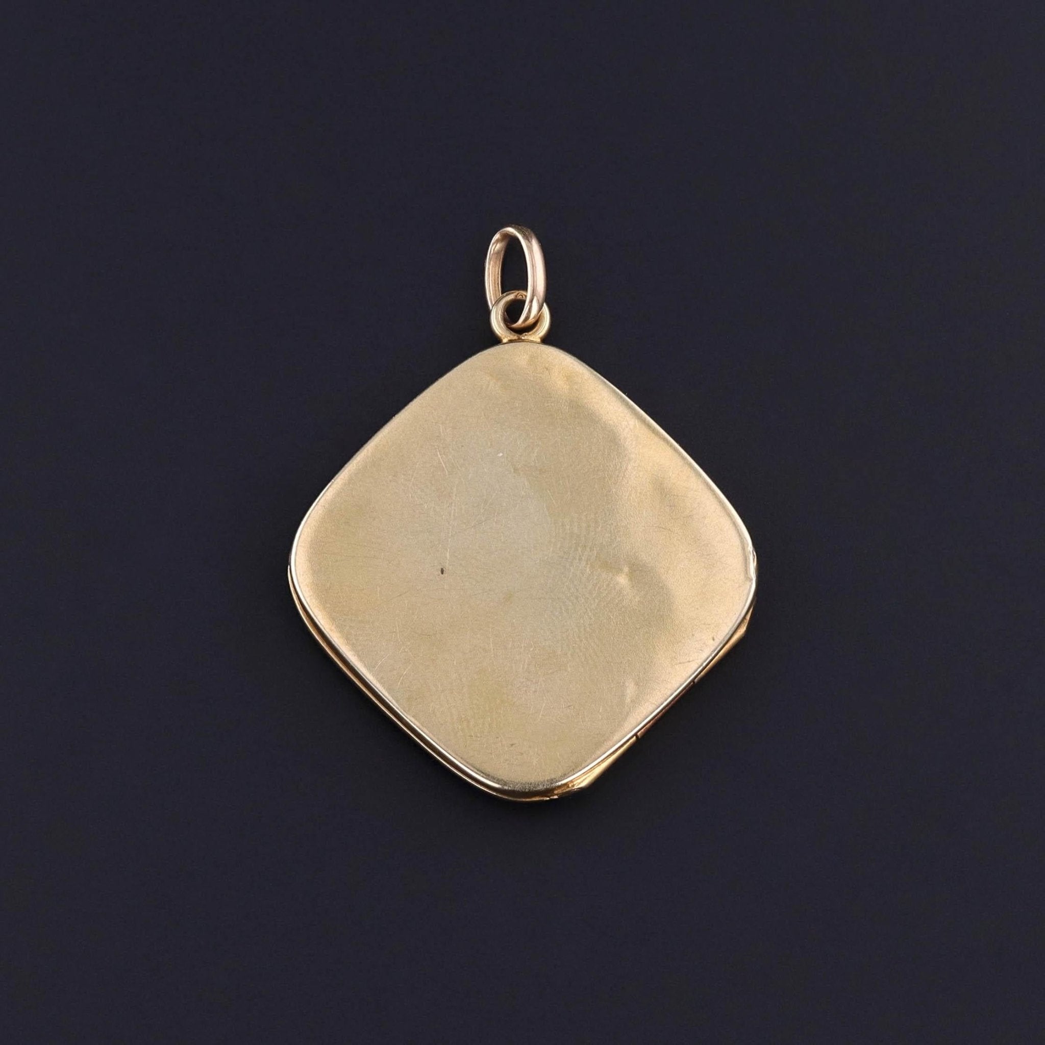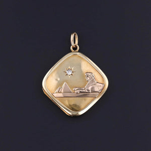 Antique Egyptian Revival Locket: This 14k gold locket (circa 1910) features a sphinx and pyramid with a diamond sun.
