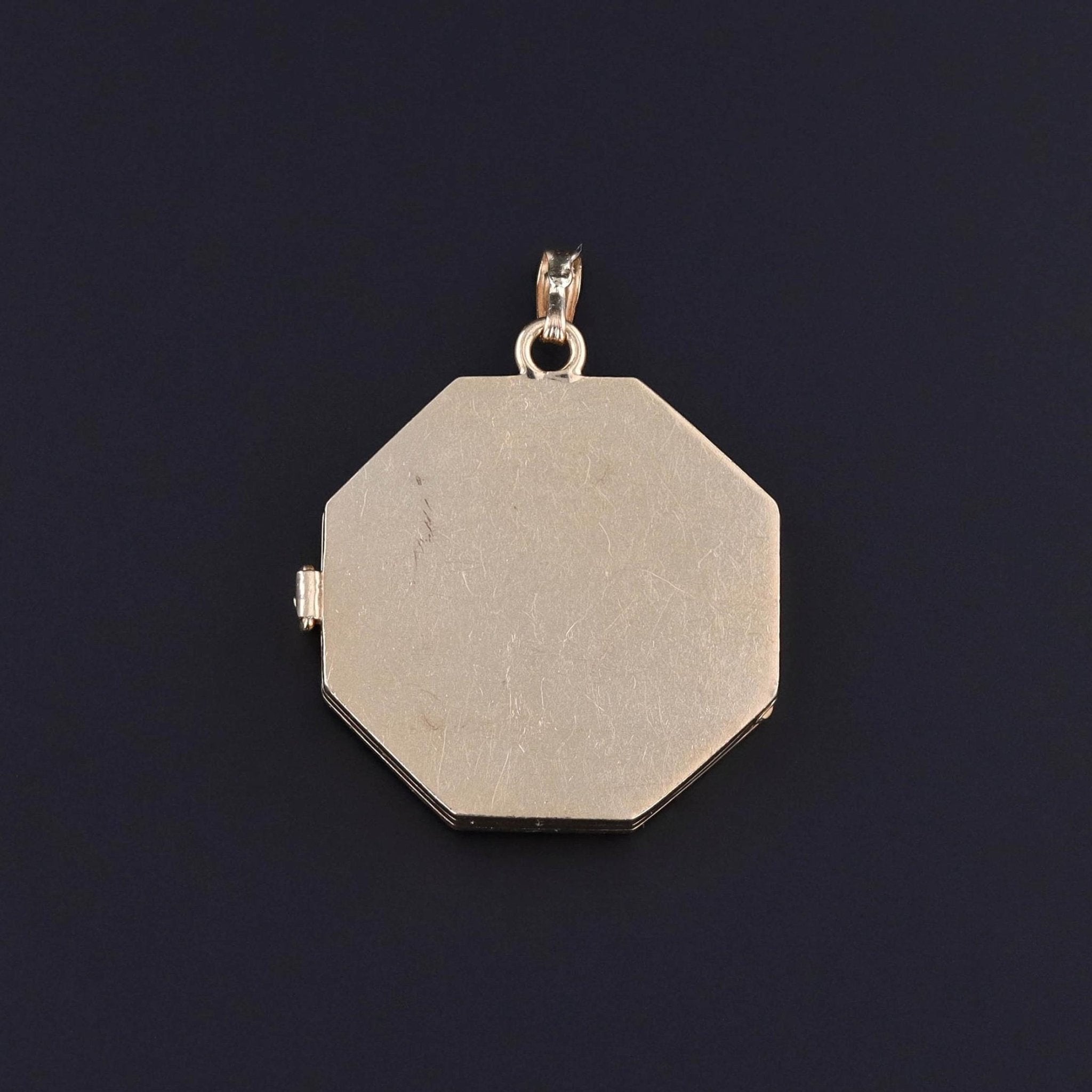 Antique Locket of 14k Gold: This antique locket (circa 1920) features a machine turned and hand etched front with frames for 3 photos.