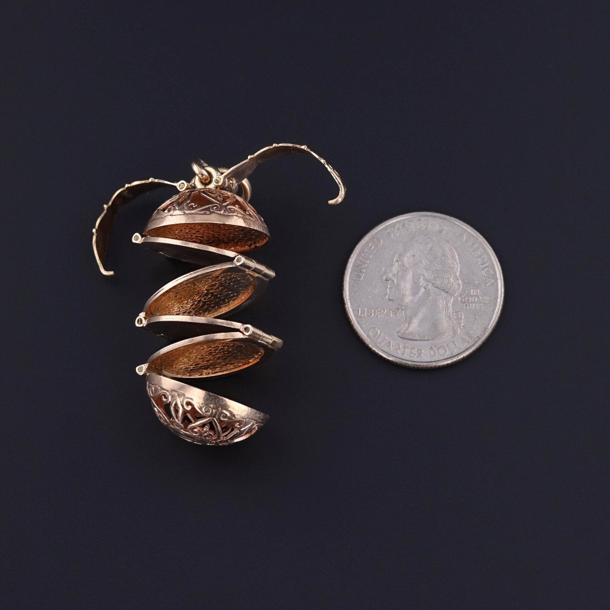 This antique locket (circa 1920) features an orb of 12ct gold that unfolds into 6 photo panels.