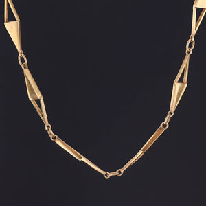 The solid 9ct gold necklace (circa 1960) measures 16 inches and weighs 8.8 grams. It is in very good condition.