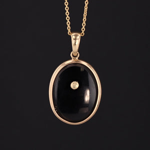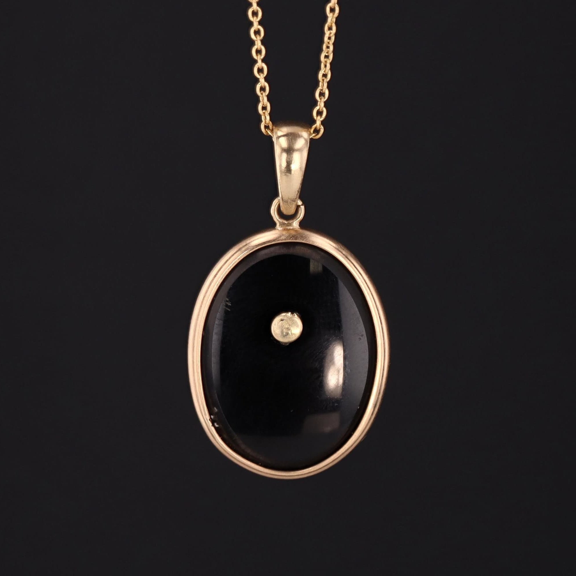 The enamel insect was originally a gold filled stick pin (circa 1910) that our jeweler transformed by riveting it onto onyx and mounting it in 14k gold.