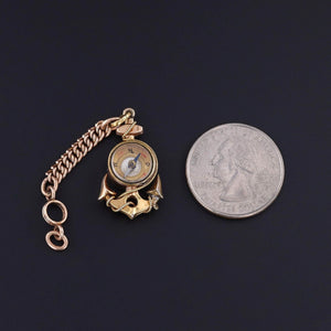 Antique Anchor Compass Pendant: This antique, 12ct gold pendant dates to the 1870s. The piece features an anchor with a working compass hanging from a gold chain. The pendant and chain are 12ct gold, and the compass is in working order.