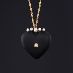 This striking black enamel heart with its glistening diamond accent and pearl crown would be the perfect addition to any jewelry collection. Whether you dress it up or dress it down, this piece is beautifully versatile and can be worn either as a pendant or a brooch.