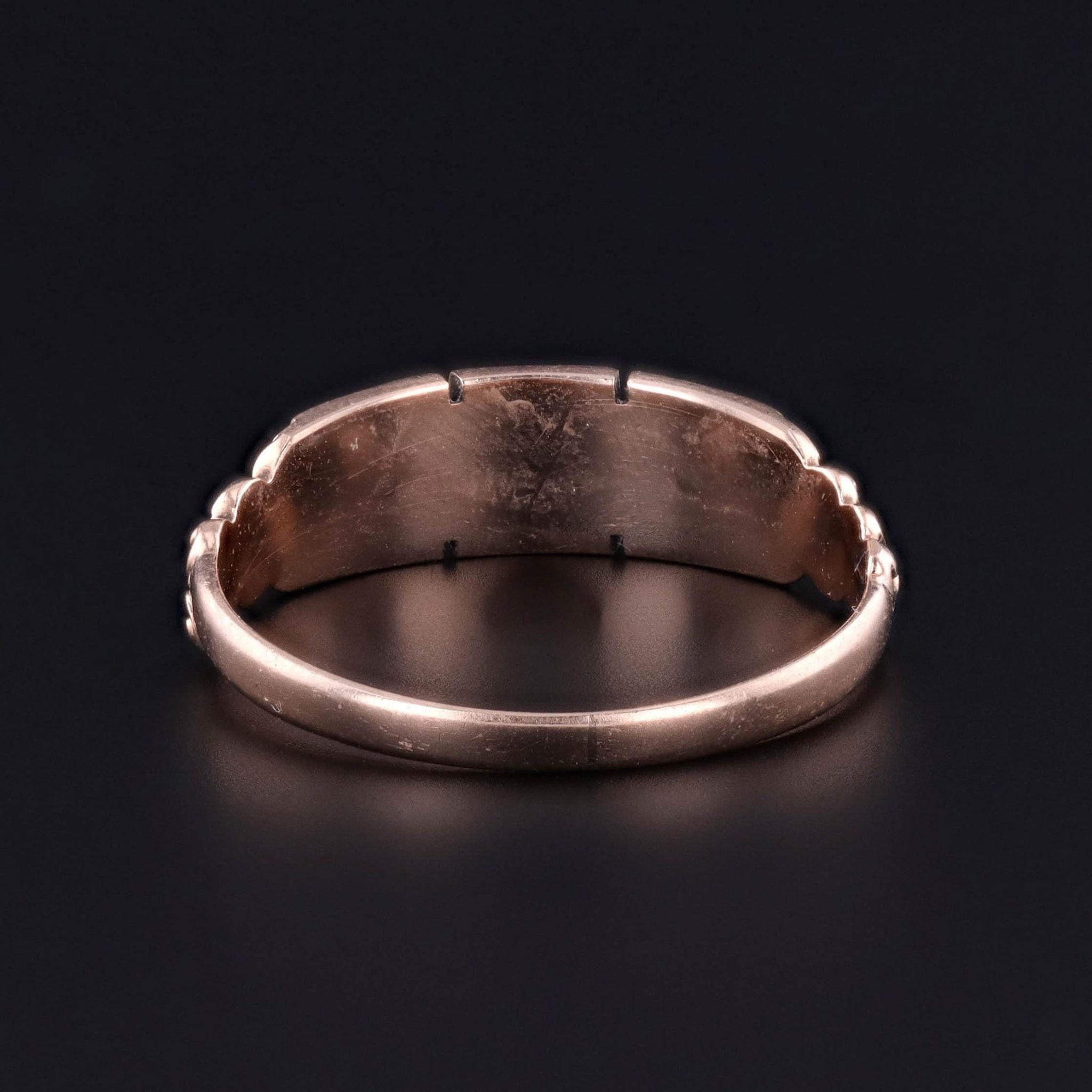 The ring measures 0.2 inches at its widest, and it is in great condition. It is currently a size 7, but can be resized free of charge.