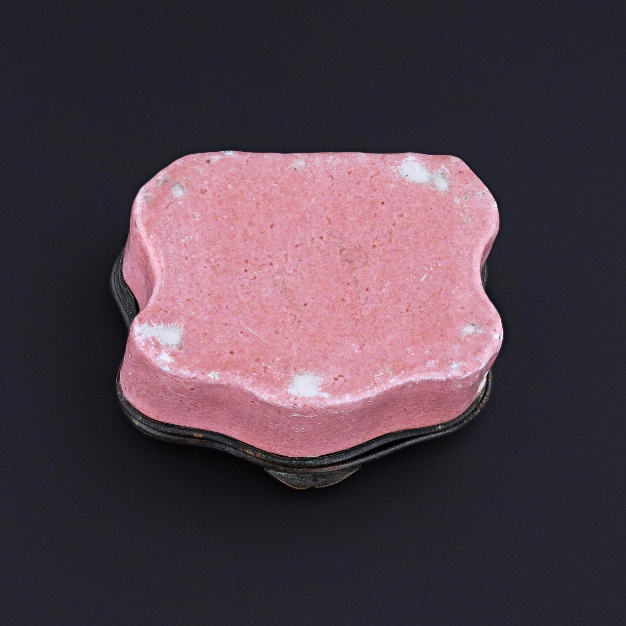 Measuring 1.5 inches high by 1.9 inches wide and 1.25 inches deep, this diminutive treasure was once used to hold patches of gummed taffeta—small adhesive “beauty spots” used to conceal blemishes or enhance one's complexion in 18th-century fashion. These boxes were more than functional: they were also tokens of affection, often exchanged between lovers and bearing poetic messages or hand-painted motifs.