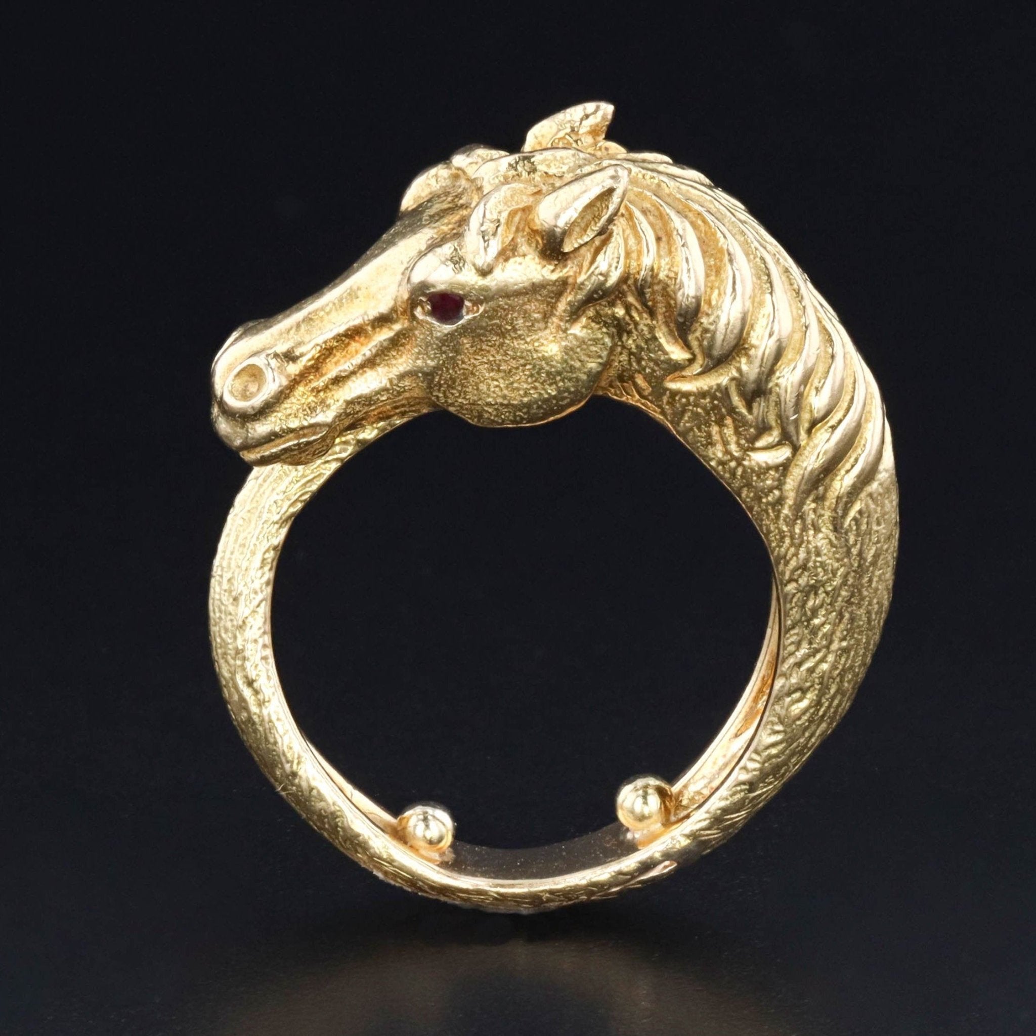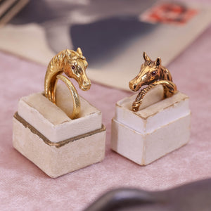 A bold and elegant statement ring, this piece is ideal for lovers of equestrian jewelry, vintage animal rings, or unique gold designs with personality. Whether worn as a personal talisman or gifted to a horse lover, it's a piece that’s truly full of character.