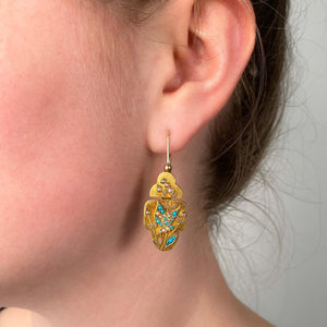 The gold components have been professionally verified using XRF (X-ray fluorescence) analysis and traditional jeweler’s acid testing, confirming their 14k composition. In great antique condition, these earrings are beautiful examples of late Victorian figural jewelry, ideal for collectors who appreciate natural motifs, symbolic design, and finely preserved 19th-century craftsmanship.