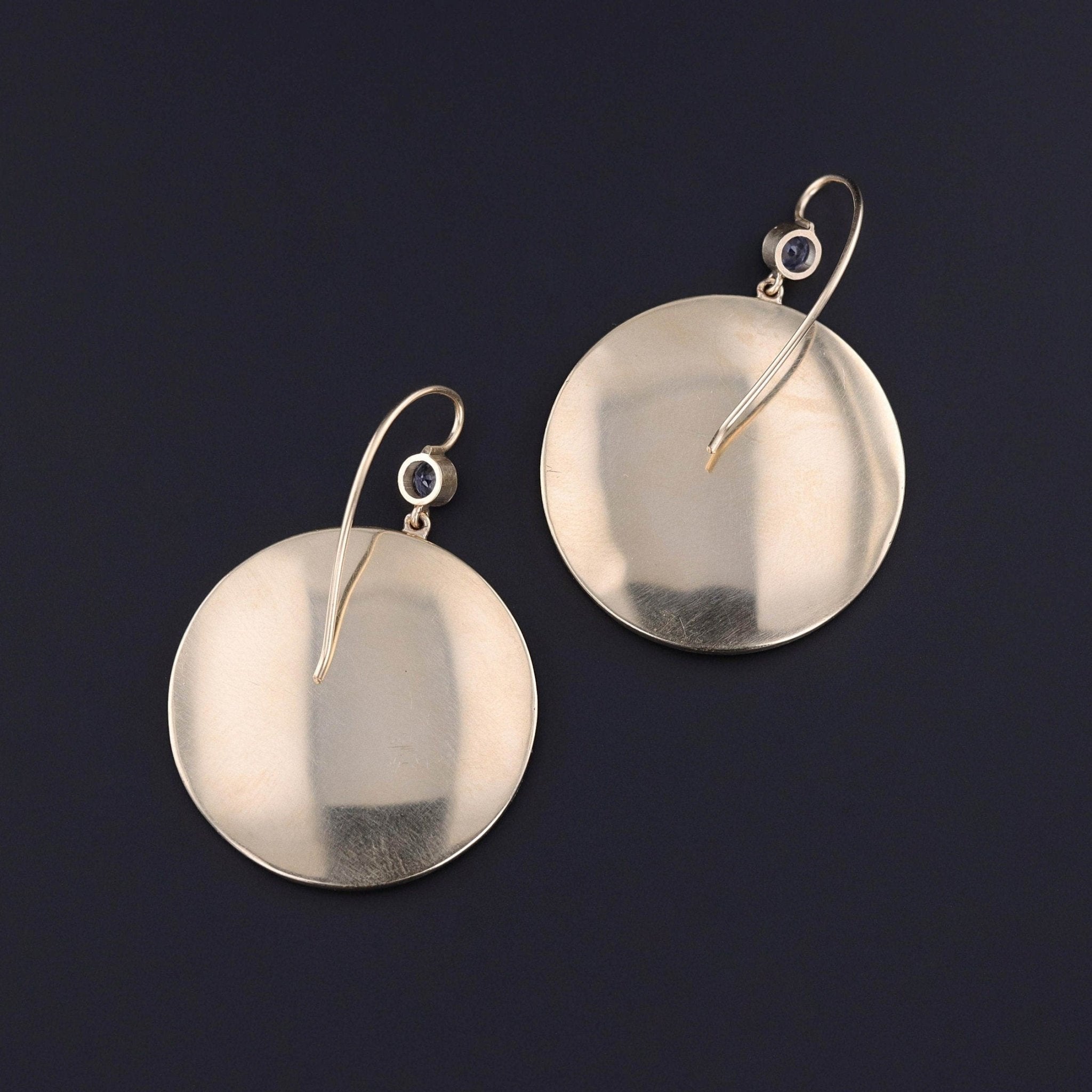 Each earring measures 1.7 inches from the top of the ear wire to bottom by 1.2 inches wide, and they have a combined weight of 20.89 grams. The earrings are in very good condition for their age with light surface wear.