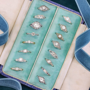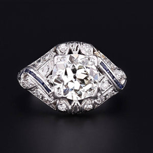 Materials: diamond, sapphire, old european cut, filigree, platinum, OEC cut diamond, old cut diamond.