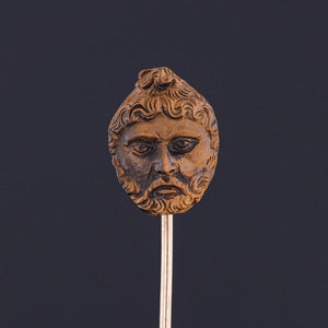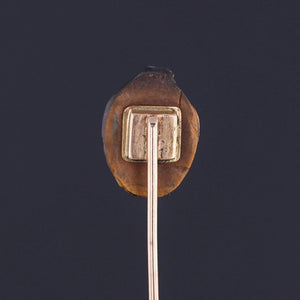 The expressive carving is mounted on a 10k gold pin stem, creating a piece that balances Victorian sentimentality with bold naturalism. This stickpin exemplifies the intricate craftsmanship and symbolic detail so prized in 19th-century jewelry.