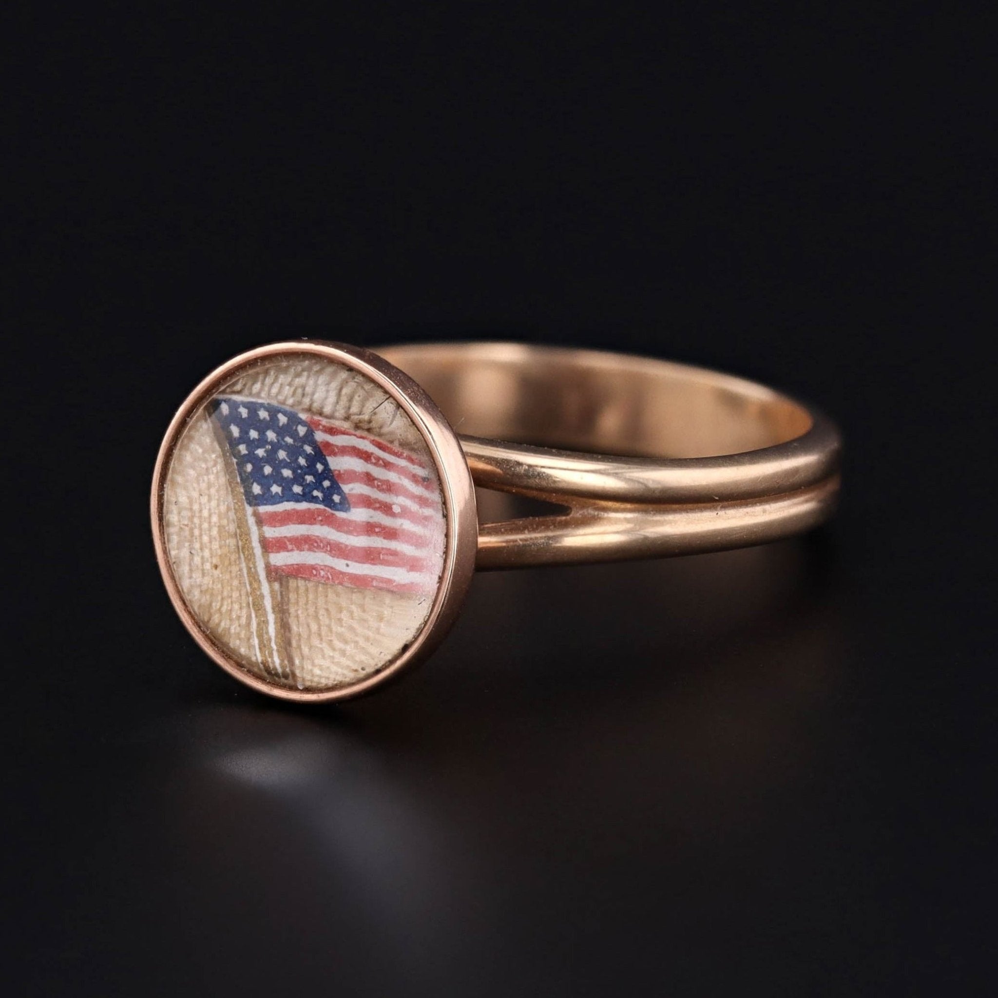 A one-of-a-kind American flag ring created from an antique part (circa 1910-1915).
