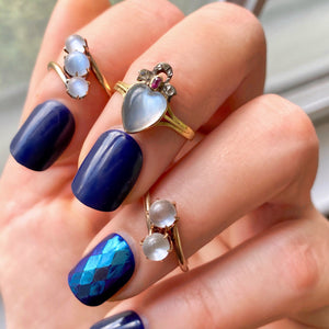 Moonstone, a gorgeous iridescent stone with silvery blue tints that almost look like ice, was a cherished gift among lovers during the 19th and early 20th centuries.