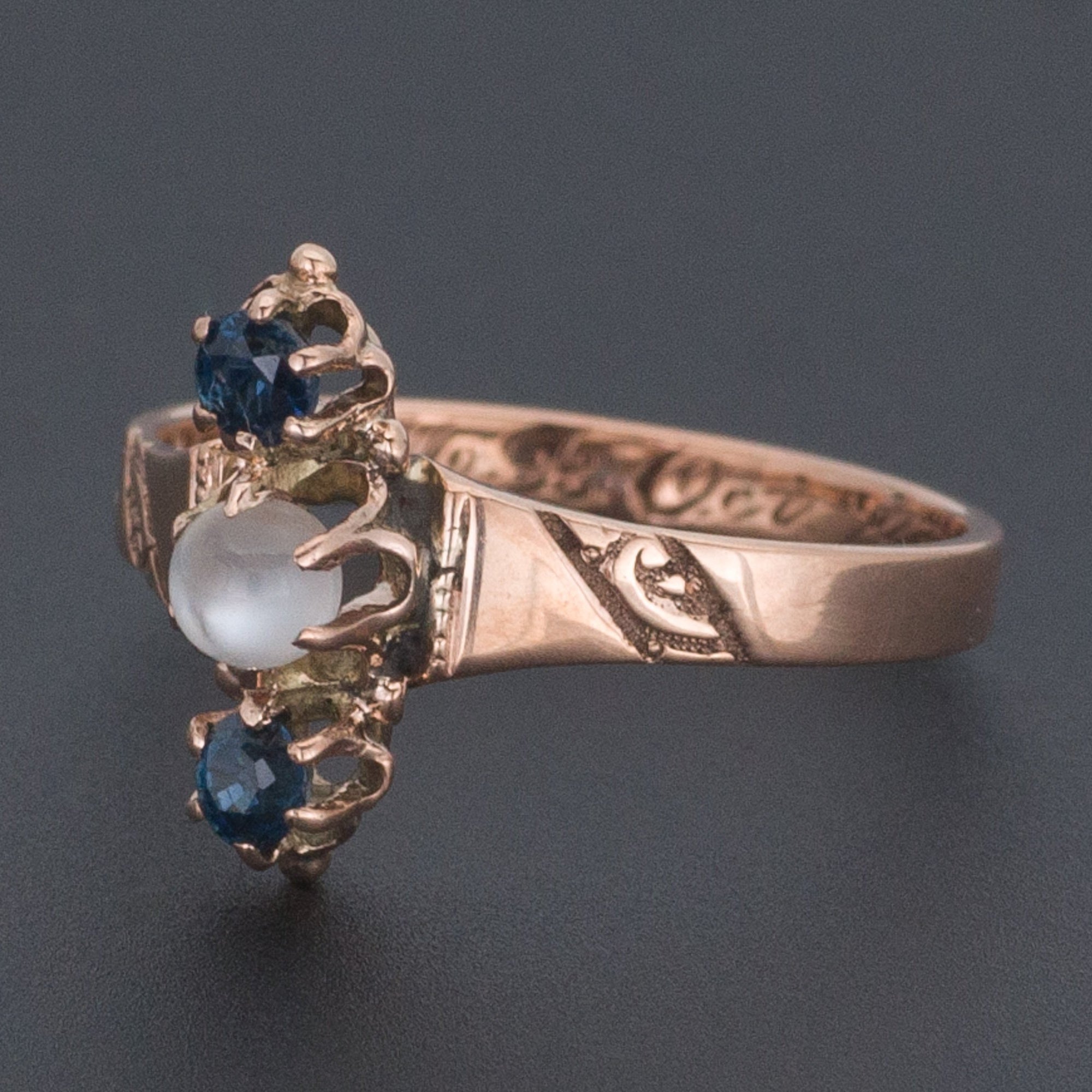 An elegant moonstone and sapphire ring from the Victorian era.