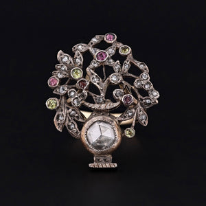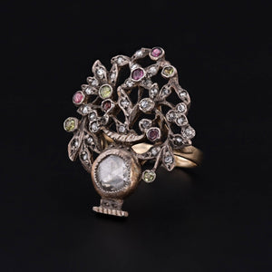 A stunning giardinetti ring featuring a basket of shimmery diamond & gemstone flowers!