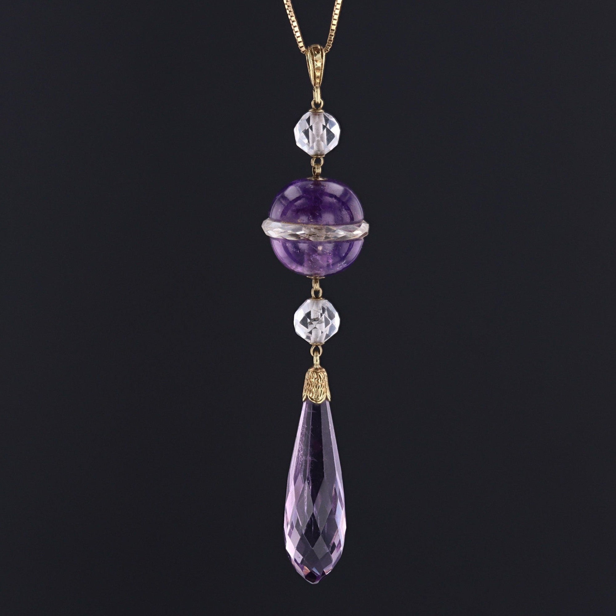 Swing back into the Roaring 20s with this fun natural amethyst and rock crystal pendant!