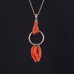 Antique Coral Figa Hand Charm Necklace | 14k Gold & Coral Pendant with Optional 14k Gold Chain