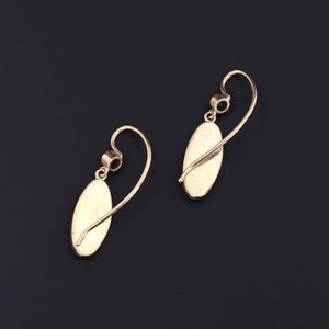 Each earring measures 1 inch from the top of the ear wire to the base by 0.3 inches across, offering a graceful drop with refined proportions. The gold has been authenticated through XRF (x-ray fluorescence) analysis and traditional jeweler’s acid testing, confirming purity and integrity.