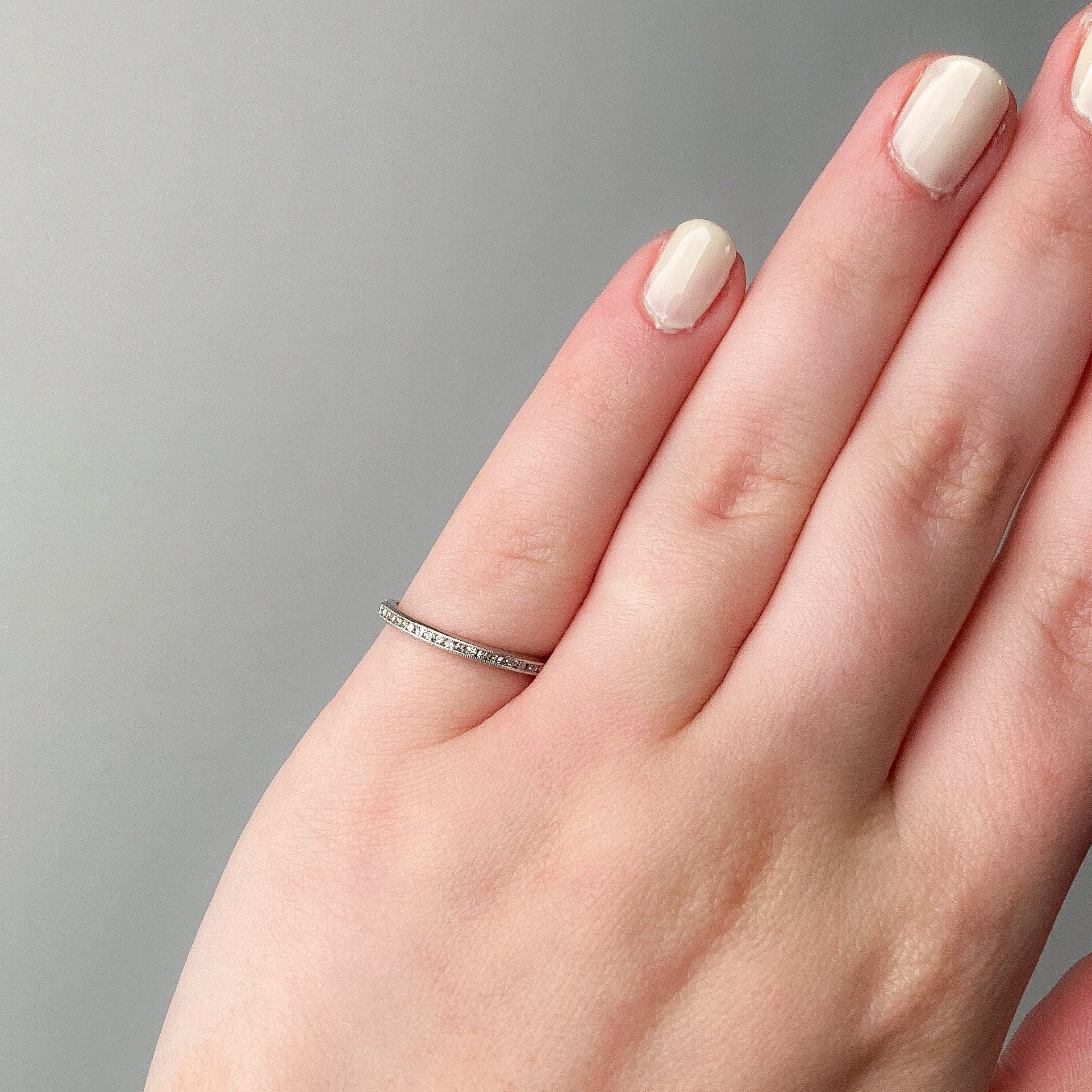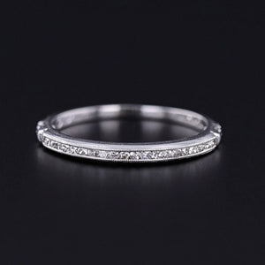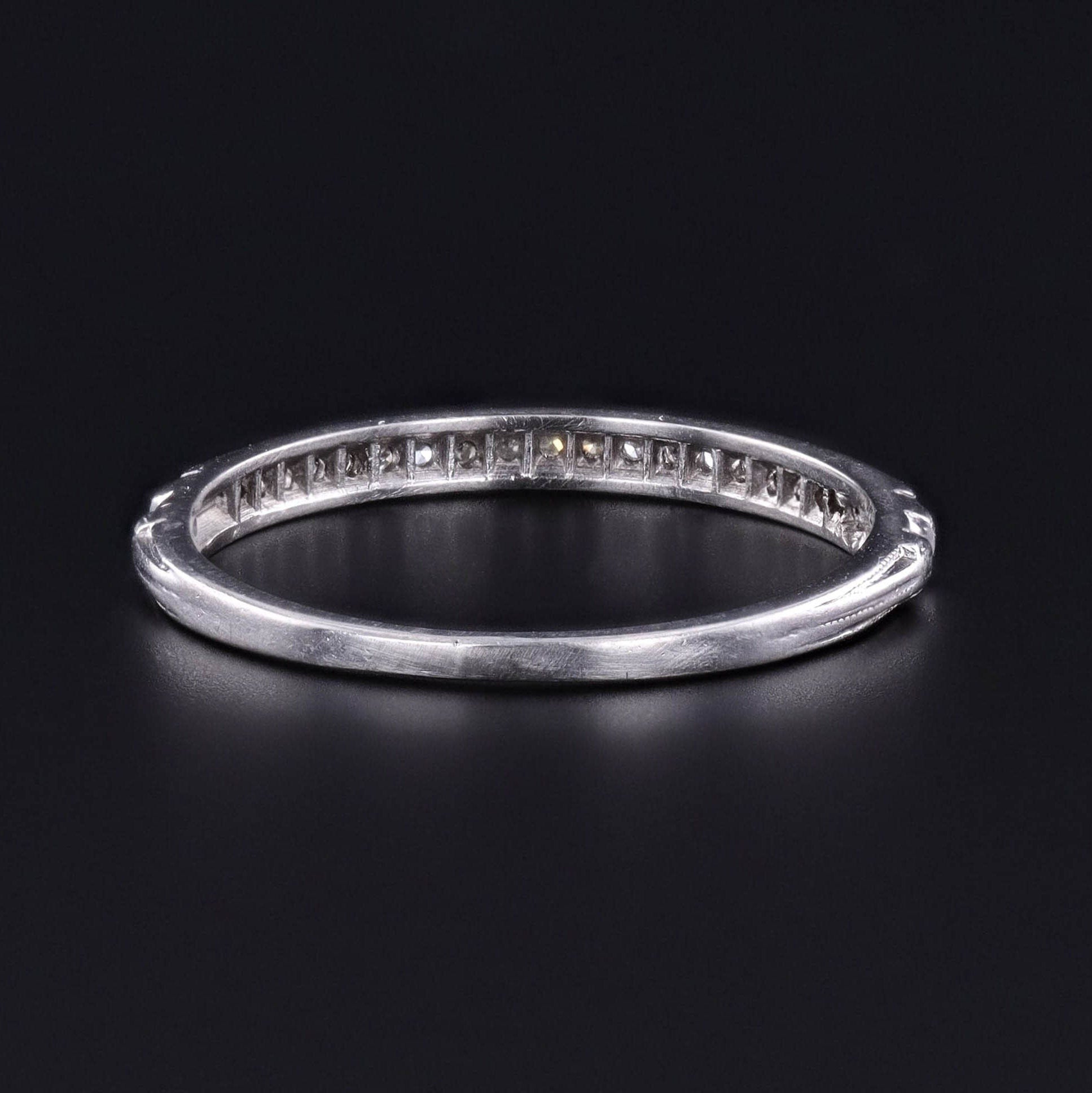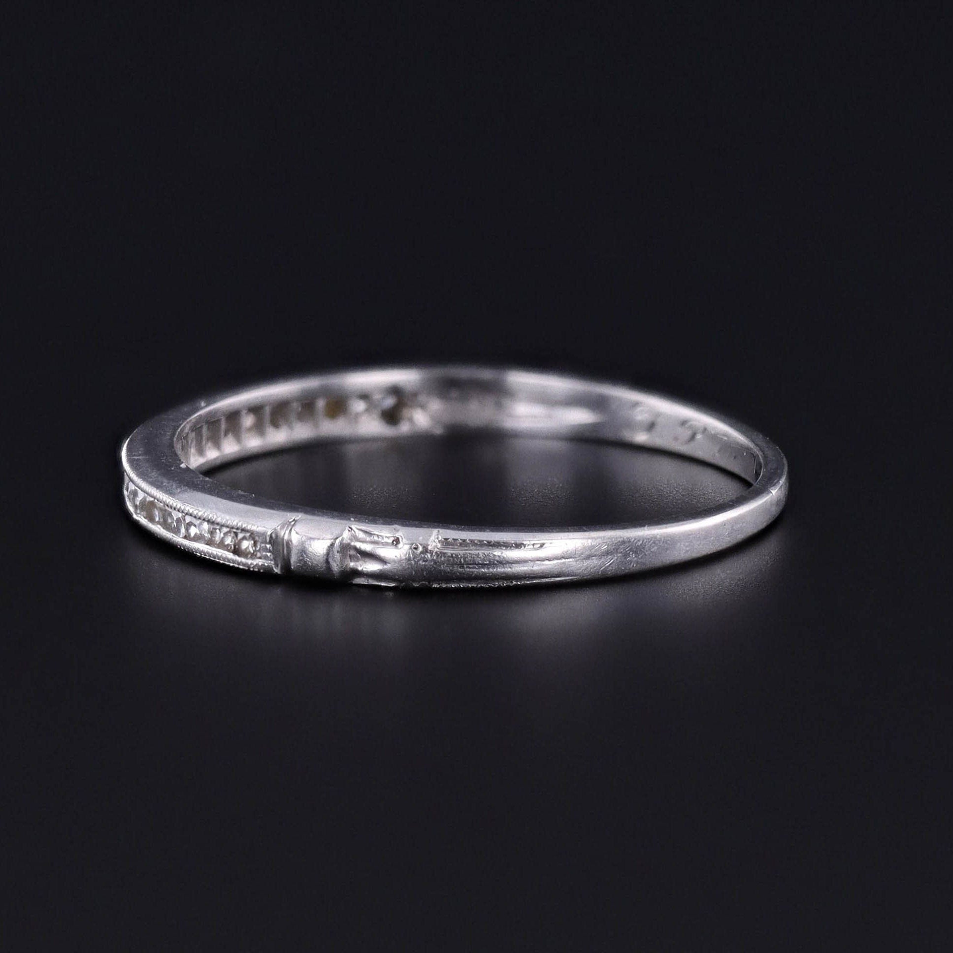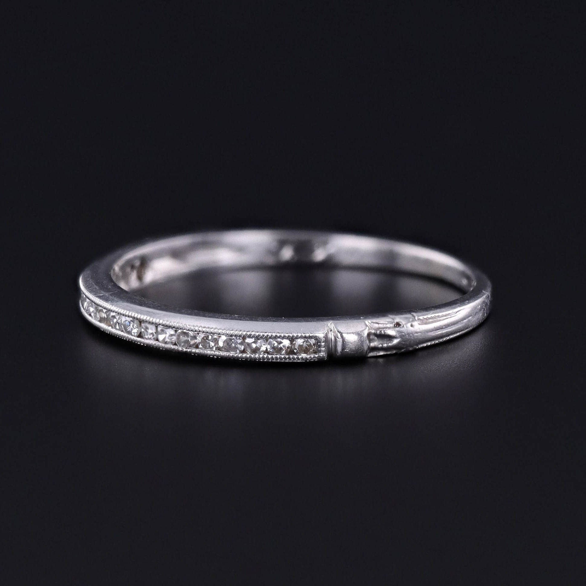 Diamond Wedding Band or Stacking Ring: Swing back into the elegance of the 1920s with this exquisite platinum band, adorned with 20 single-cut diamonds.