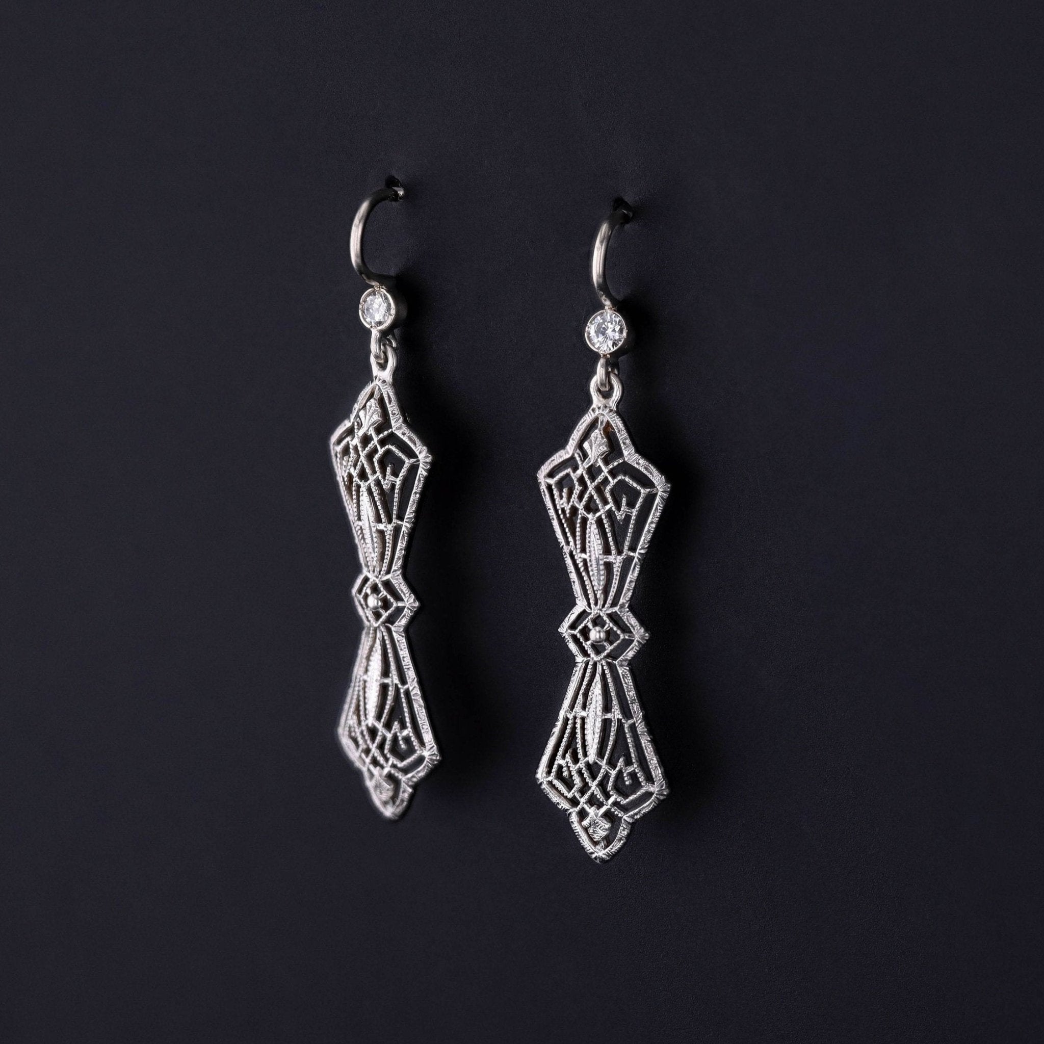 Elegant filigree earrings created from a pair of antique brooches (circa 1915-1920).
