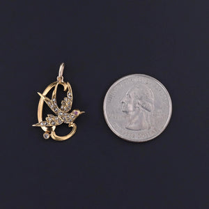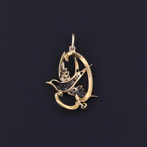 Antique Swallow Pendant: This antique pendant (circa 1880-1890) features a diamond bird with a ruby eye, set in 18k yellow gold.