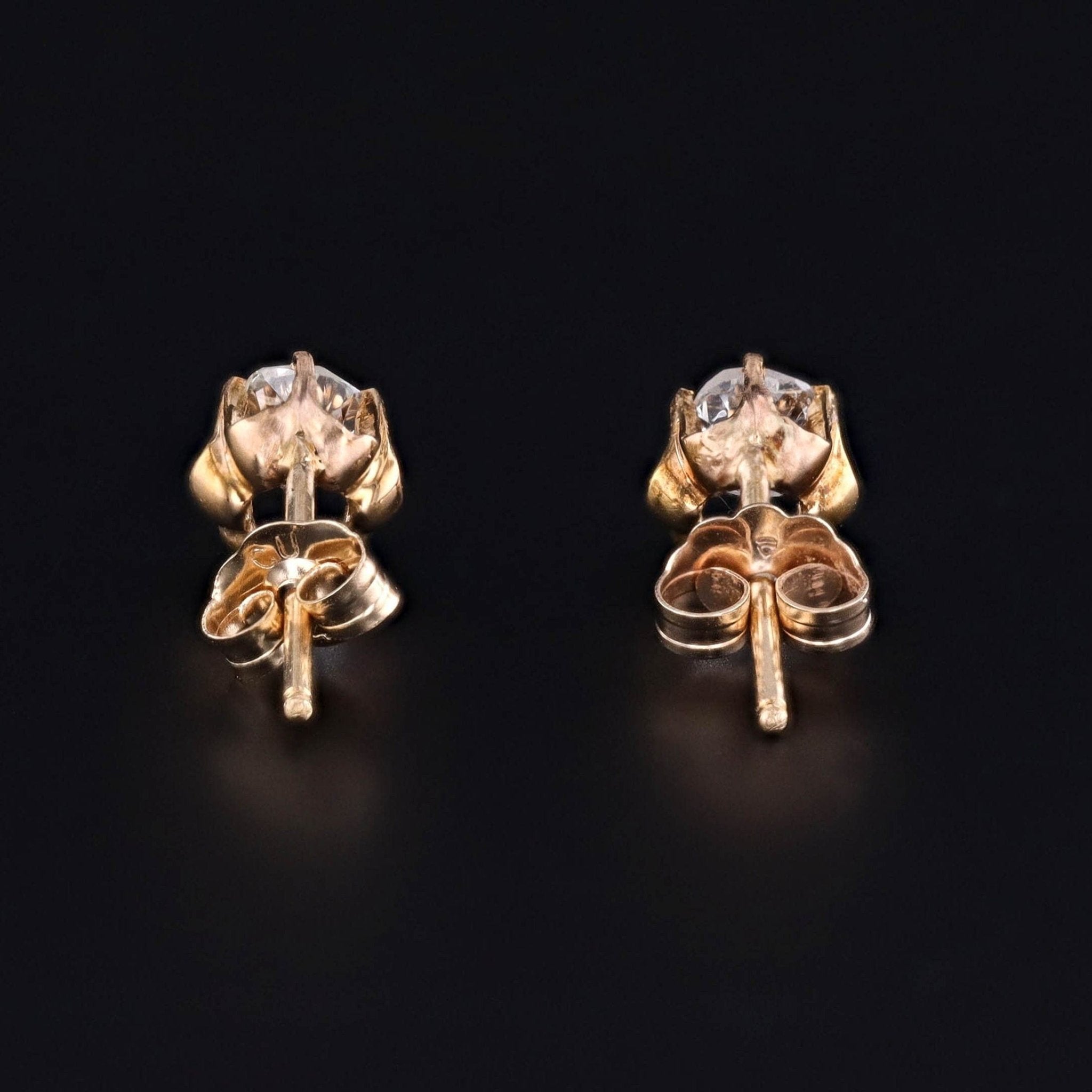 These timeless post earrings feature alluring old mine cut diamonds of H-J color, SI1-SI2 clarity with a total weight of 0.50ct. The diamonds were originally part of an antique brooch (circa 1880-1900). They're mounted in 18k gold and we added 14k gold posts and backs.