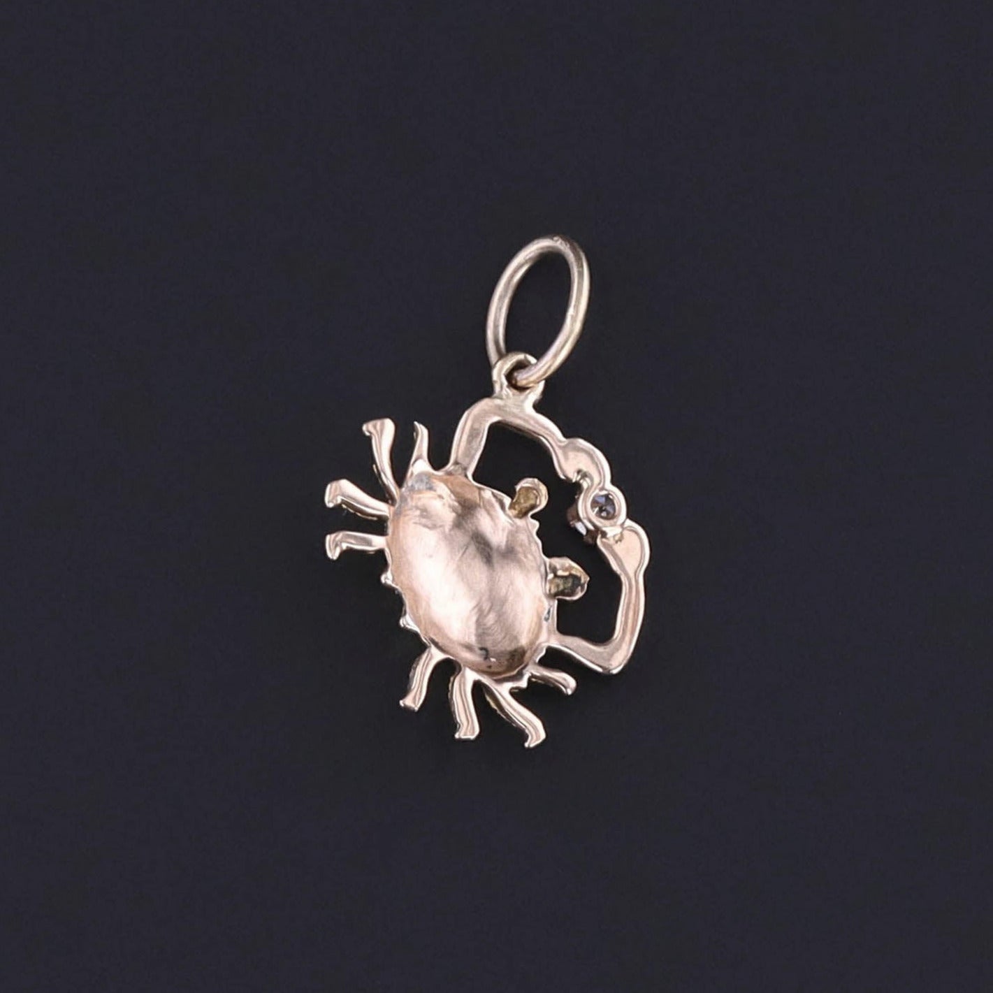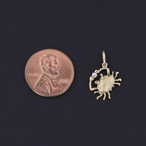 Antique Crab Charm: Discover the seaside in this 10k gold crab charm, adorned with a sparkling diamond. Originally an antique stickpin dating back to 1910, our skilled jeweler transformed it by removing the stem and adding a jump ring bail.