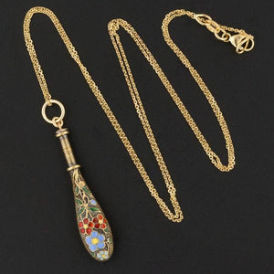 A charming enamel flower pendant created from a 14k gold antique button hook.