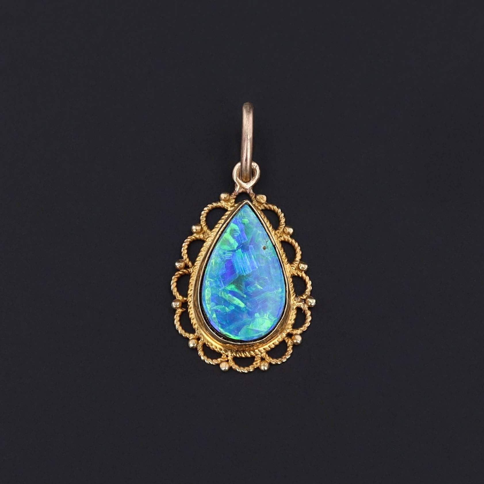 A dramatic opal doublet with vibrant flashes of green and blue.