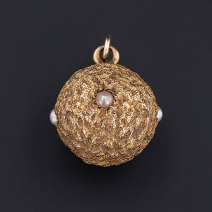 14k Gold & Pearl Orb Pendant | Antique Hat Pin Conversion
