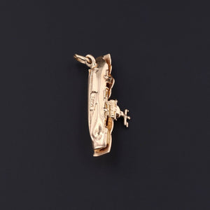 This vintage pendant (circa 1970-1980) features an aircraft carrier of 14k gold.
