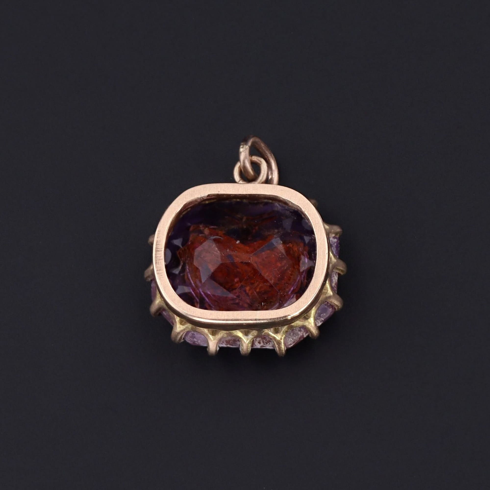 A stunning amethyst charm created from an antique stick pin will add a pop of whimsy not just to your ensemble but to your whole day!