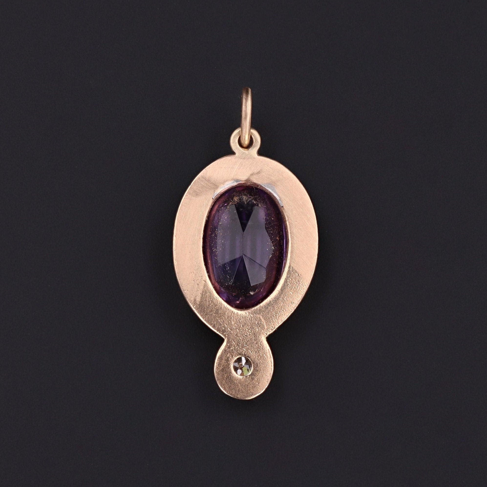 This elegant amethyst and diamond charm was created from an antique stick pin (circa 1910-1920). The charm is unmarked, but acid tests for 14k gold.