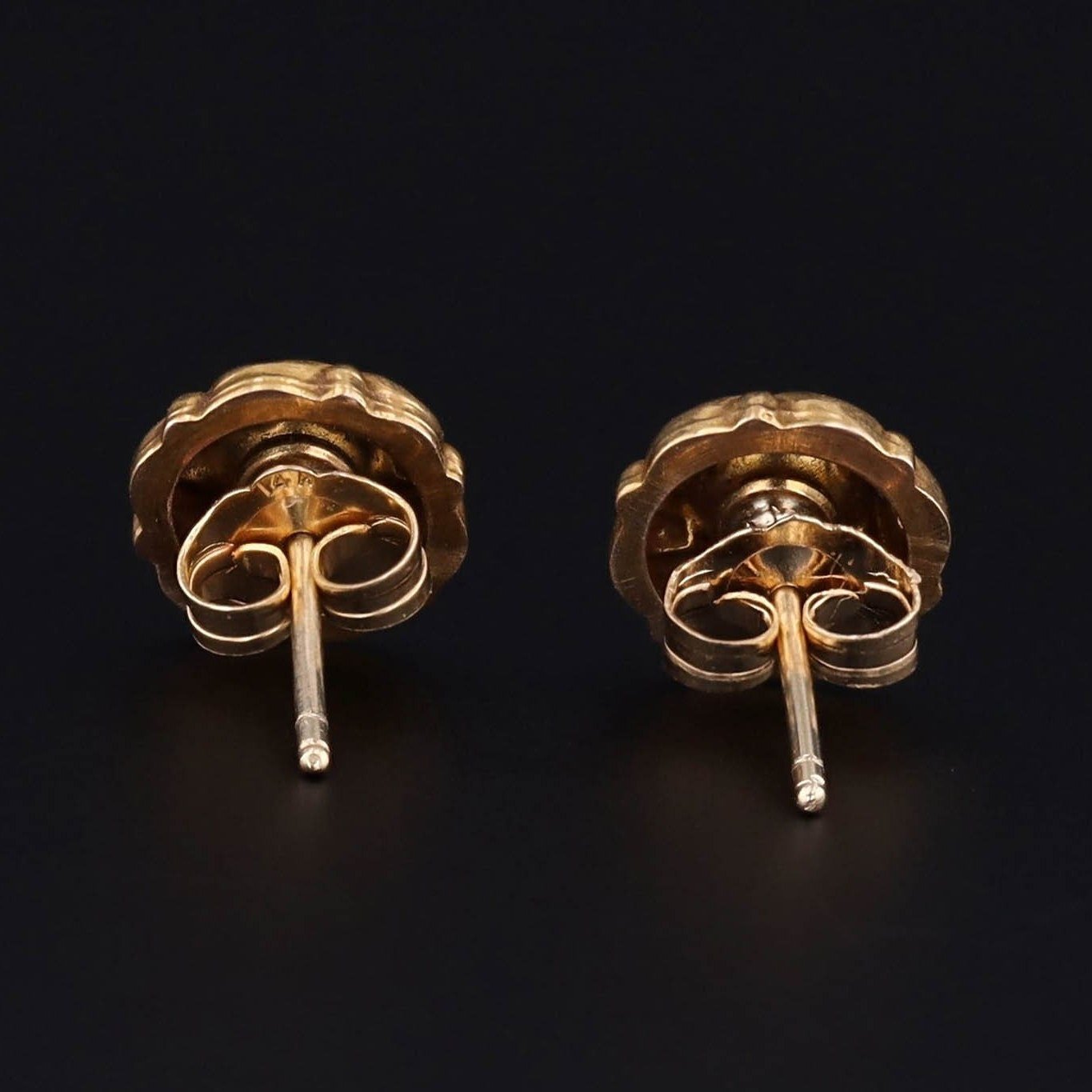The earrings measure 0.35 inches in diameter, and they are in very good condition.