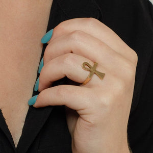 This 1970s-1980s ankh ring is 14k gold (unmarked, but acid tested).