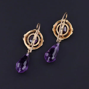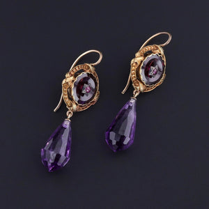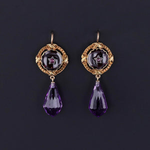 These elegant earrings were created from antique amethyst and garnet cufflinks (circa 1890) and amethyst briolette dangles.