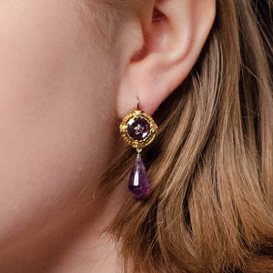 The tops of the earrings are 18k gold with 14k gold ear wires and the amethysts are adorned with tiny ruby stars.