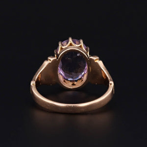 Elegant and understated, this antique ring (circa 1900) features a richly hued purple amethyst bezel-set in warm 14k gold. The vibrant gemstone—long associated with calm, clarity, and protection—adds a regal touch to the ring’s classic and refined design.