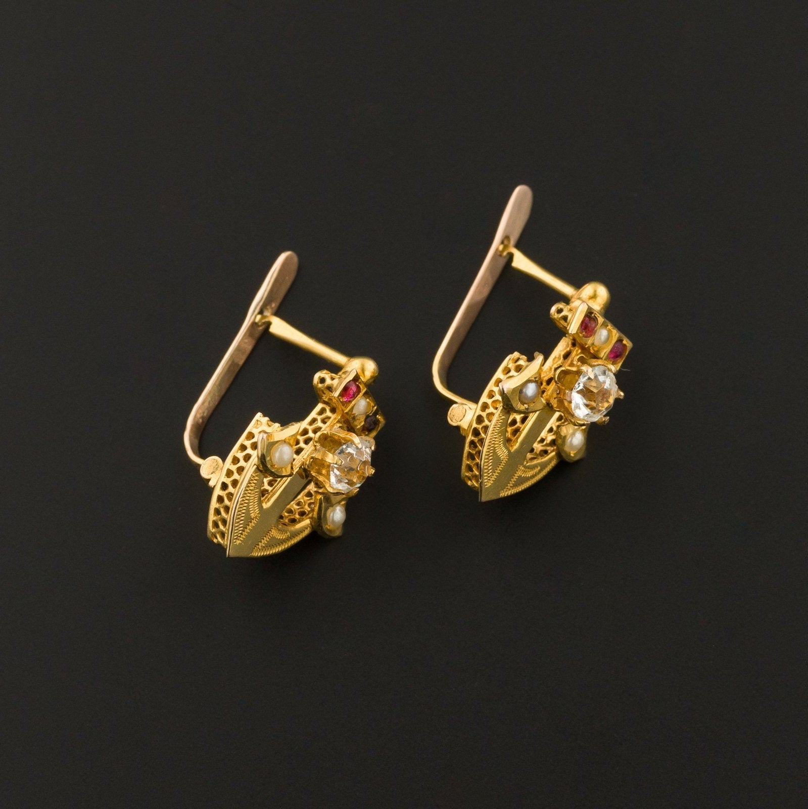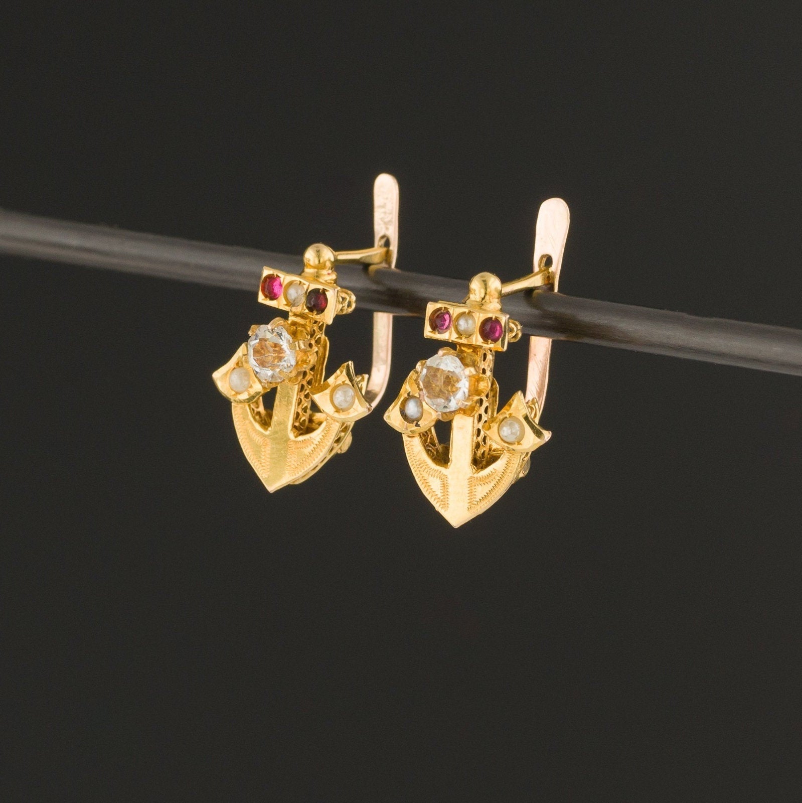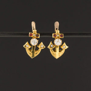 Antique Anchor Earrings | 14k Gold Anchor Earrings with Paste Accents
