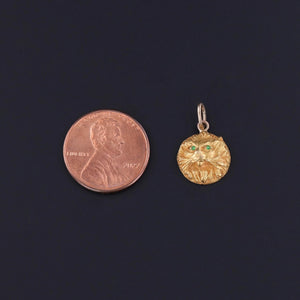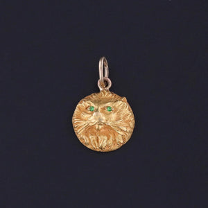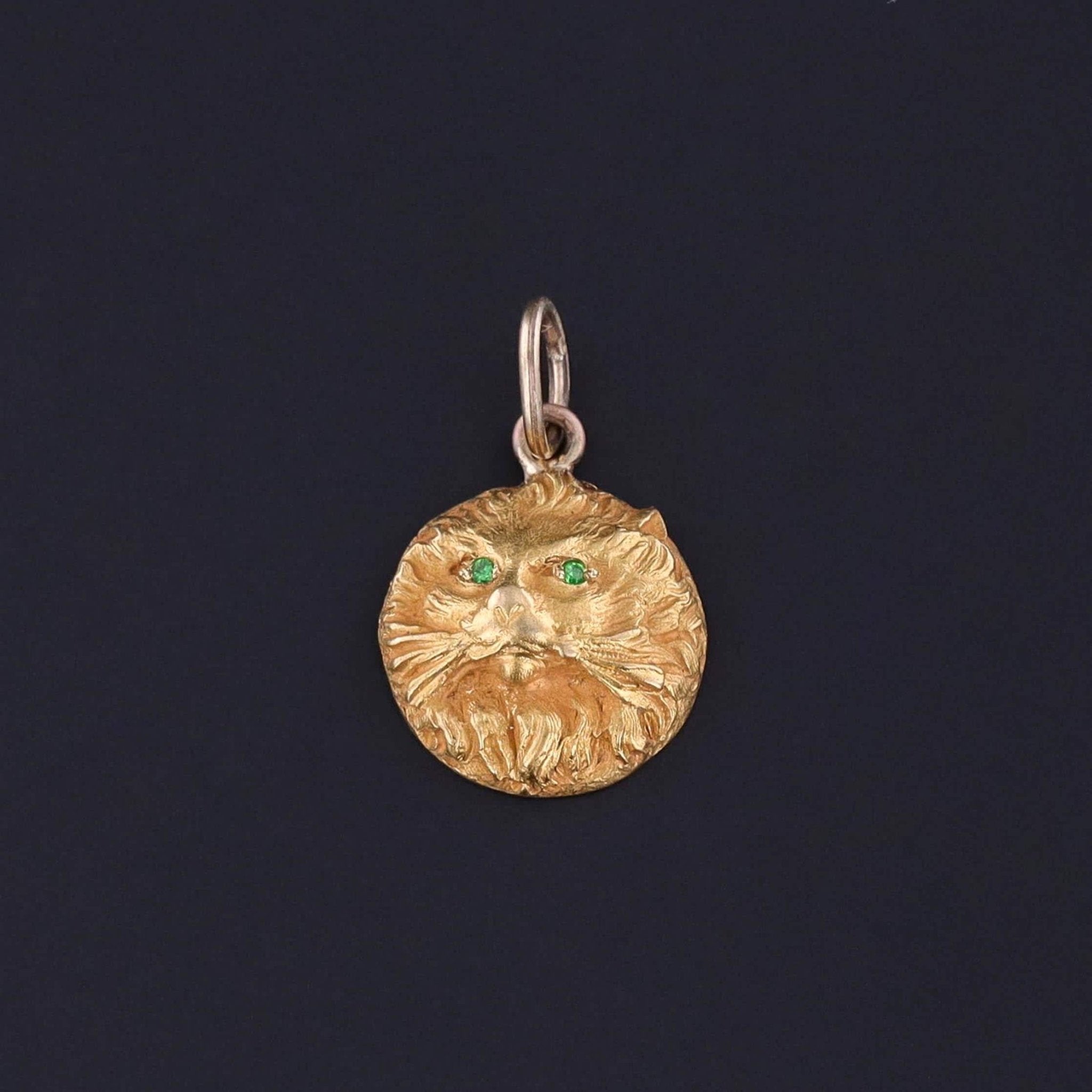 Antique Cat Charm: This antique charm features a cat of 14k gold with two demantoid garnet eyes. It was originally a stickpin (circa 1890) that our jeweler transformed by removing the pin and adding a jump ring bail.
