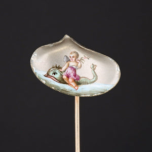 A Victorian stick pin (circa 1860-1880) depicting a cherub riding a fish.
