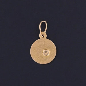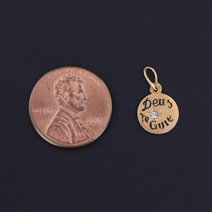 This antique charm (circa 1910-1920) features the Portuguese phrase 'Deus te guie' which translates to 'God guide you'. The petite charm is 18k gold with dark enamel and a single cut paste (glass) accent.