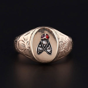 The fly was originally antique silver stick pin (circa 1870) that we riveted onto a vintage 14k gold signet ring (circa 1920).