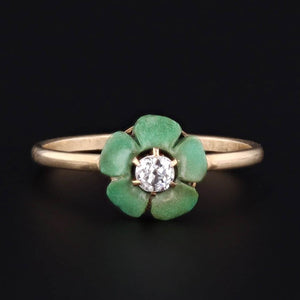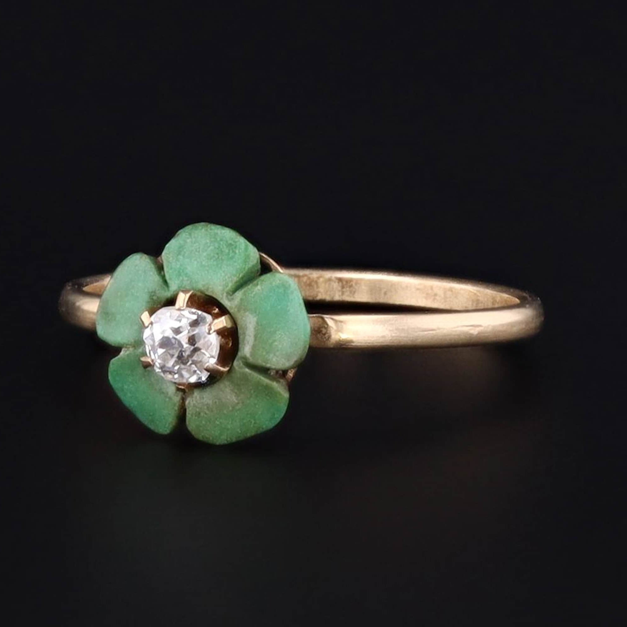 A dainty turquoise and diamond flower ring created from an antique stick pin (circa 1900).