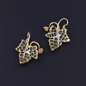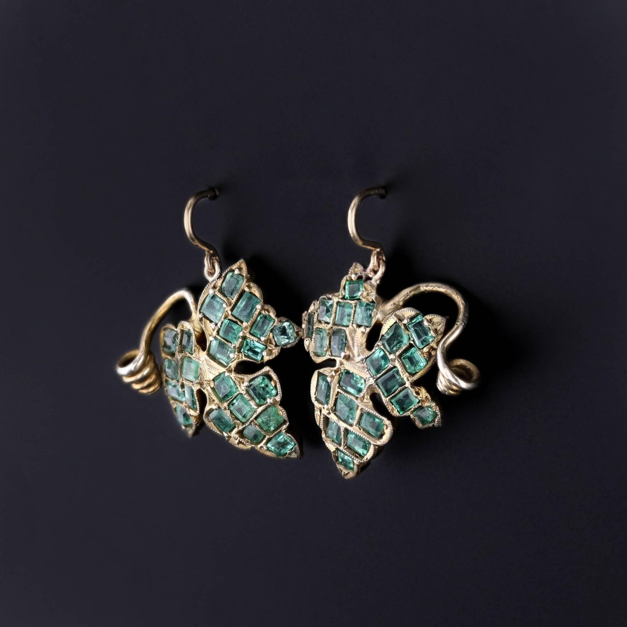 Antique Emerald Ivy Earrings: Unique earrings feature emerald studded ivy leaves set in silver vermeil. The earrings were created from an antique pin (circa 1880). We added 14k gold ear wires.