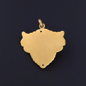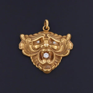 This antique pendant (circa 1900) features a gargoyle of 10k gold with single cut diamond eyes and an old mine cut diamond in its jaws.