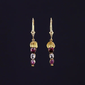 Elegant and timeless, these earrings feature antique garnet and rock crystal drops, newly set with secure 14k gold lever backs for modern wear. The pairing of rich red garnet and luminous rock crystal creates a refined contrast, lending the earrings both drama and sophistication.