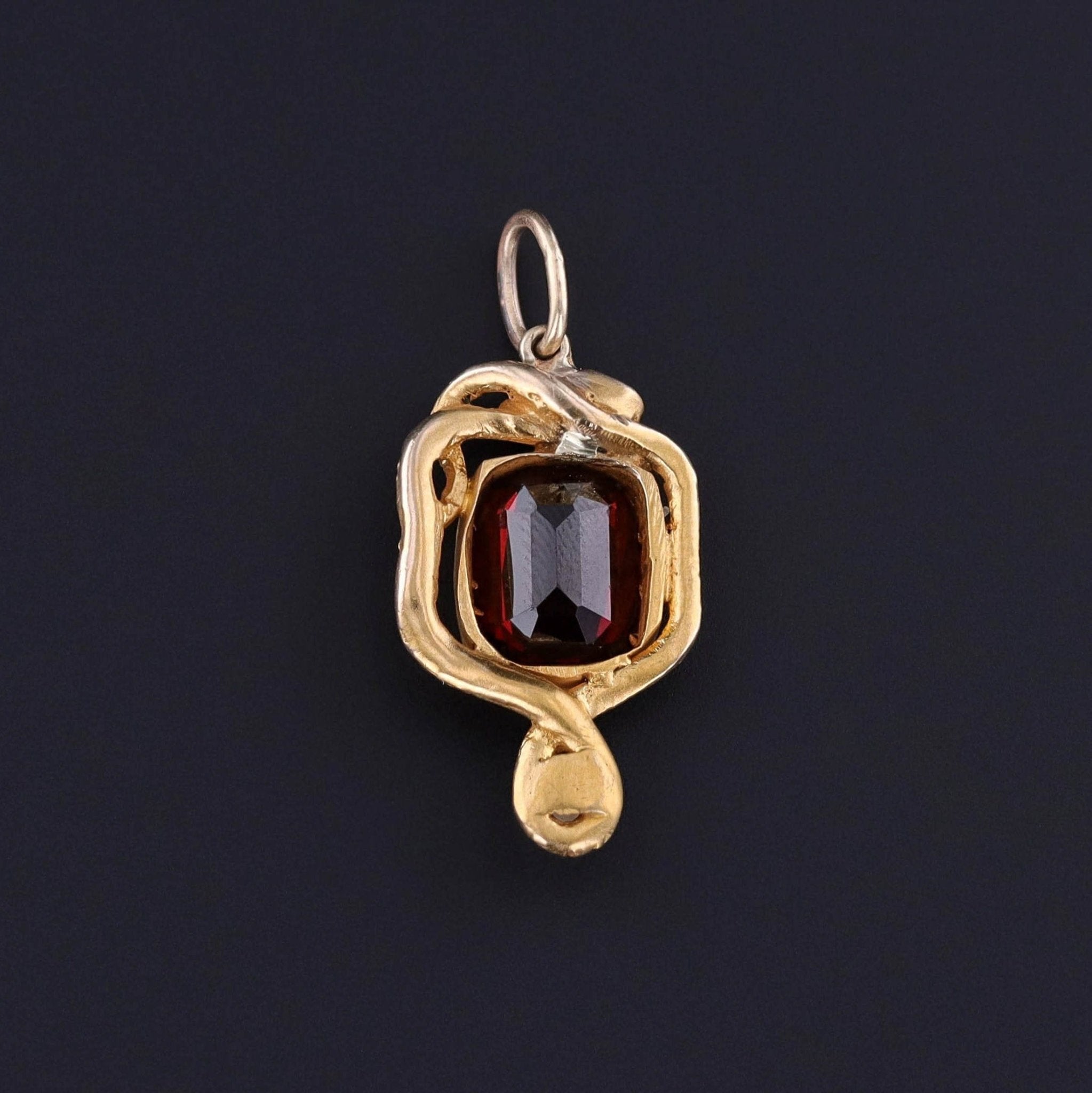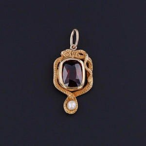 An alluring garnet and pearl snake charm created from an antique stick pin (circa 1900).