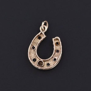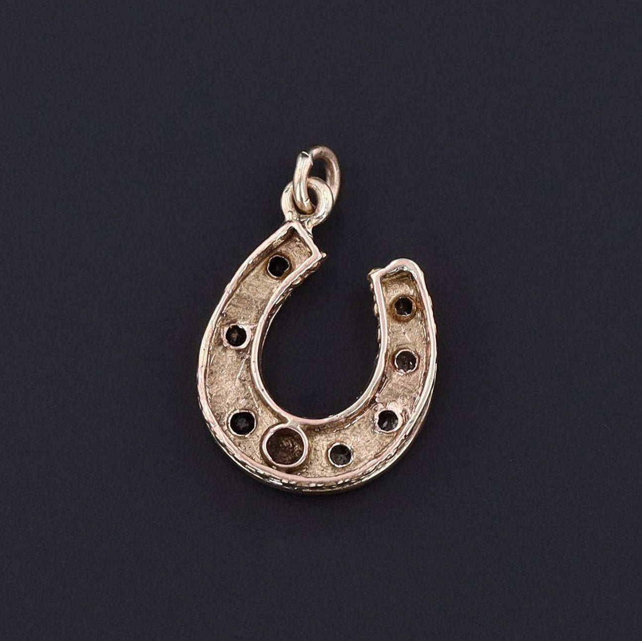 This charm was converted from an antique pin (circa 1900-1915) and features three sapphires and four diamonds set in a horseshoe of 14k gold.