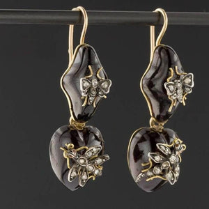 You'll be sure to generate buzz with these dramatic insect earrings from the mid-to-late Victorian era (circa 1870-1890).